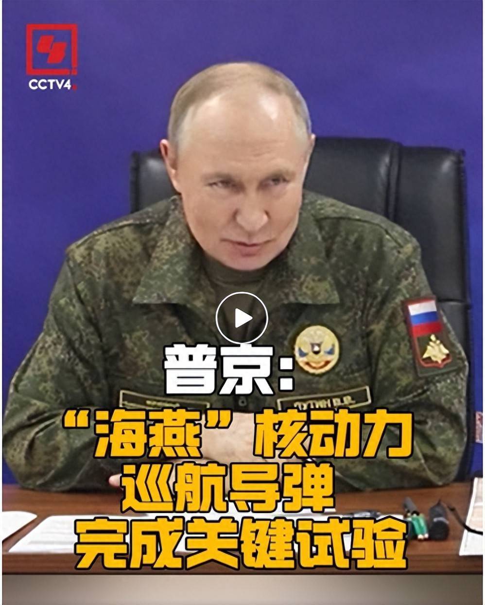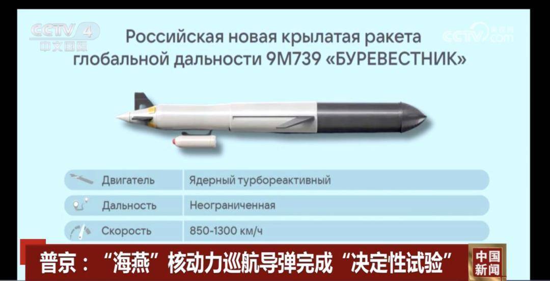 据塔斯社26日报道,俄罗斯总统普京日前在视察俄罗斯联合部队集群某指挥所时说,“海燕”核动力巡航导弹已完成“决定性试验”。普京表示,“海燕”导弹是一款“世界上独一无二”的产品,“西方没有防御这种武器的手段”。