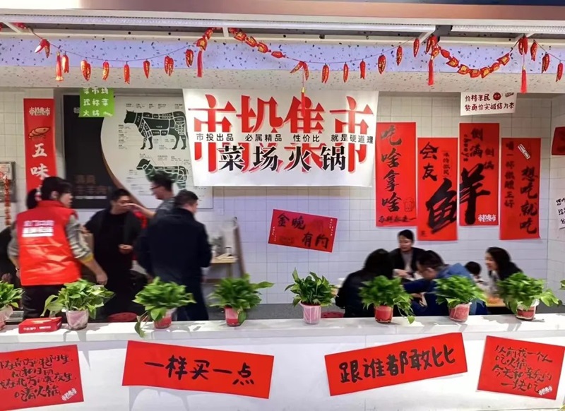 為全方位滿足廣大顧客菜市場吃火鍋體驗需求,市投集市未來路市場設(shè)立火鍋專區(qū),引入火鍋品類商戶,現(xiàn)有商戶全員參加,免費提供火鍋鍋底和餐具,顧客可根據(jù)個人喜好進(jìn)行搭配和調(diào)整,創(chuàng)造出豐富多樣的火鍋料理。
