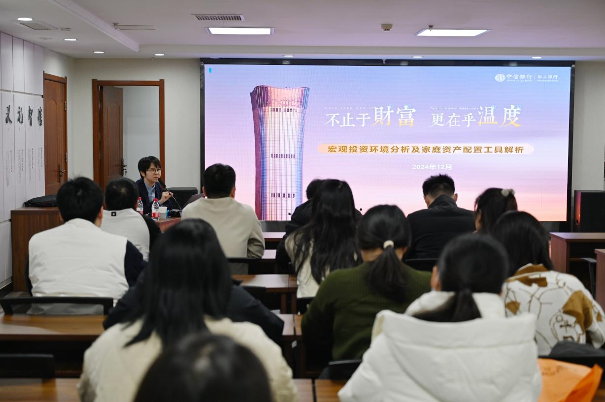 為進一步提升公司員工資產(chǎn)投資管理效率,推動實現(xiàn)資源的優(yōu)化配置與高效利用,12月10日下午,公司邀請中信銀行總行級投資顧問,為公司員工開展了宏觀投資環(huán)境分析及家庭資產(chǎn)配置工具解析的培訓活動。