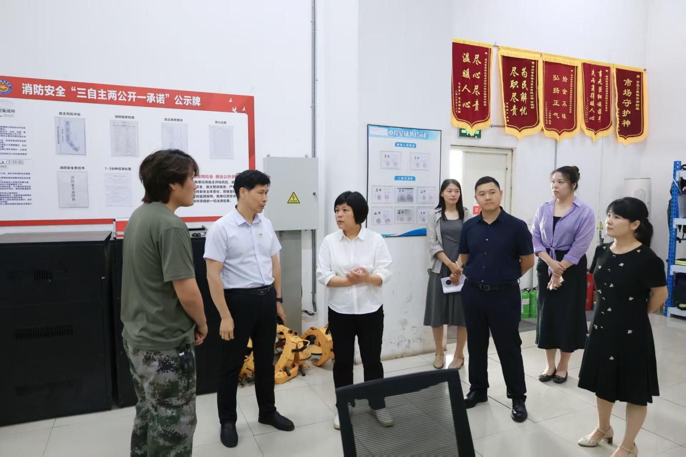 黨委書記、董事長、總經理張海燕一行赴百榮世貿商城D座,針對商城安全設施運行,風險管控及措施落實等關鍵環節,重點核查安全主體責任落實、消防設備維護保養情況,實地查看消防中控室、消防通道等重點區域,并聽取新商城運營公司“安全生產月”活動匯報。針對發現問題,現場提出整改要求,強調強化跟蹤督辦,確保整改到位。督導組強調,公司上下要提高思想認識,將安全管理置于突出位置,堅決克服麻痹思想和僥幸心理,嚴格落實主體責任;同時要持續提升服務能力、拓展服務范圍、提高管理效率,為商城營造更優質的營商環境。